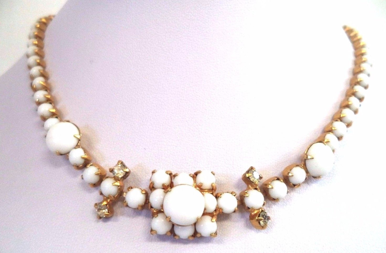 Title (ebay affiliate link): STUNNING VINTAGE ESTATE HIGH END RHINESTONE MILK GLASS 15 1/2" NECKLACE!! G6548O