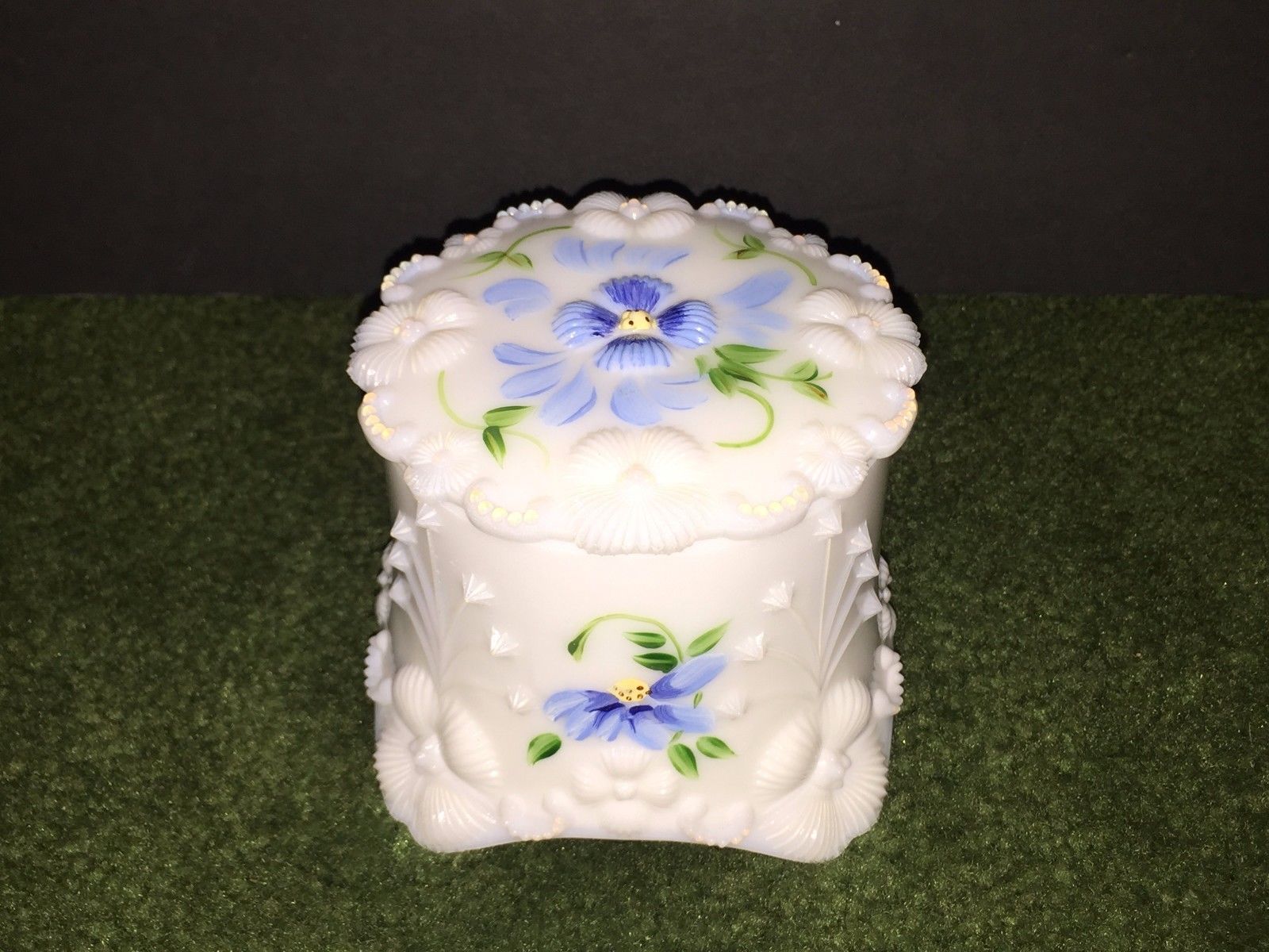 Title (ebay affiliate link): FENTON MILK GLASS ART HAND PAINTED FLORAL TRINKET BOX SIGNED