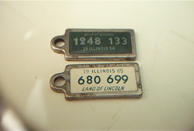 Title (ebay affiliate link): VINTAGE ILLINOIS KEY CHAIN LICENSE PLATES 1954 & 1965