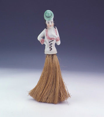 Antique Japanese Porcelain - Pin Cushion Half Doll Table Brush - Unusual!