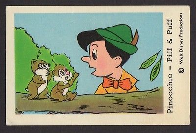 Title (ebay affiliate link): 1966 VINTAGE SWEDISH UNNUMBERED DISNEY SET GUM CARD PINOCCHIO - CHIP & DALE