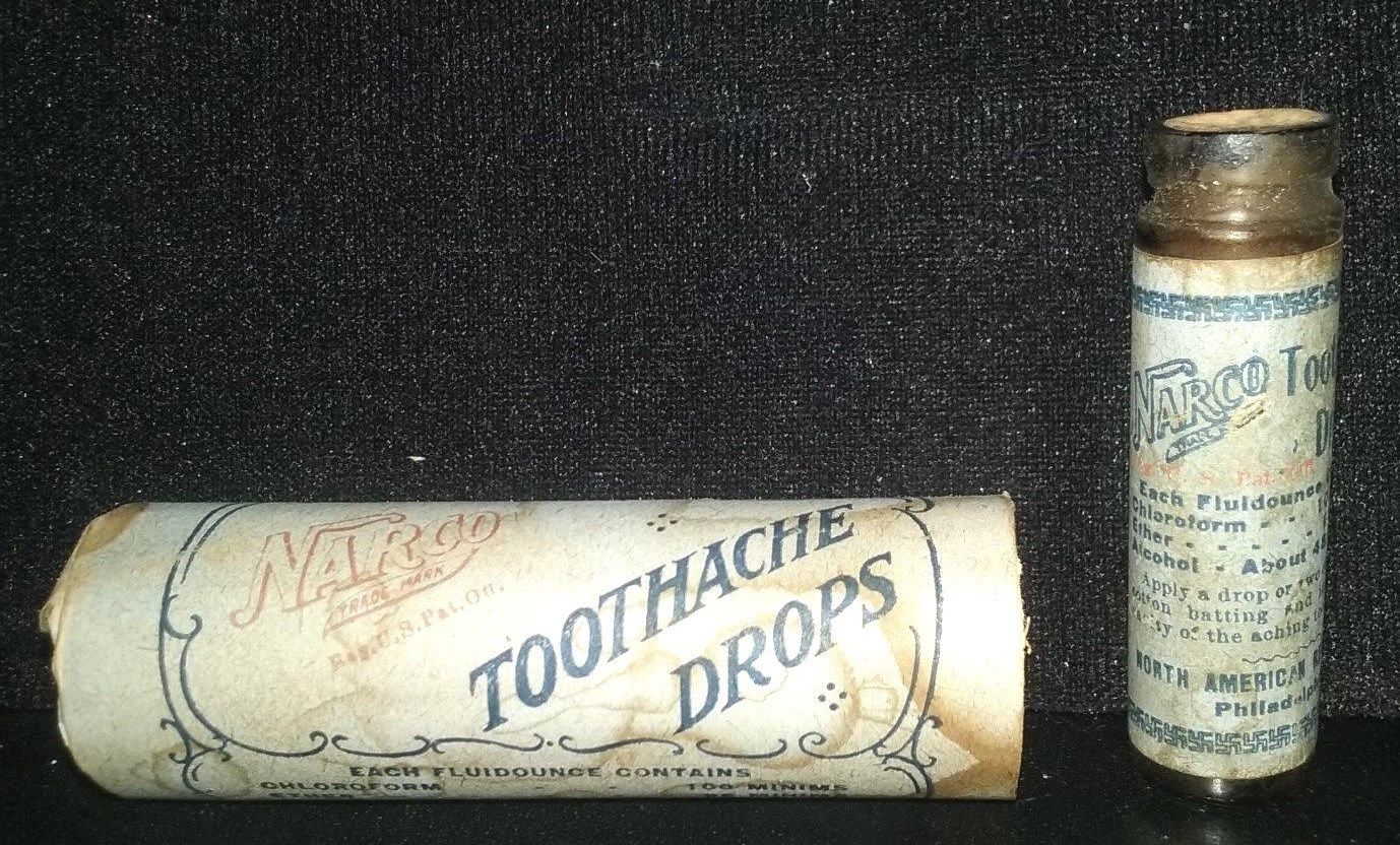Title (ebay affiliate link): ANTIQUE DENTAL MEDICINE BOTTLE: NARCO TOOTHACHE DROPS W/WRAP CHLOROFORM, ETHER