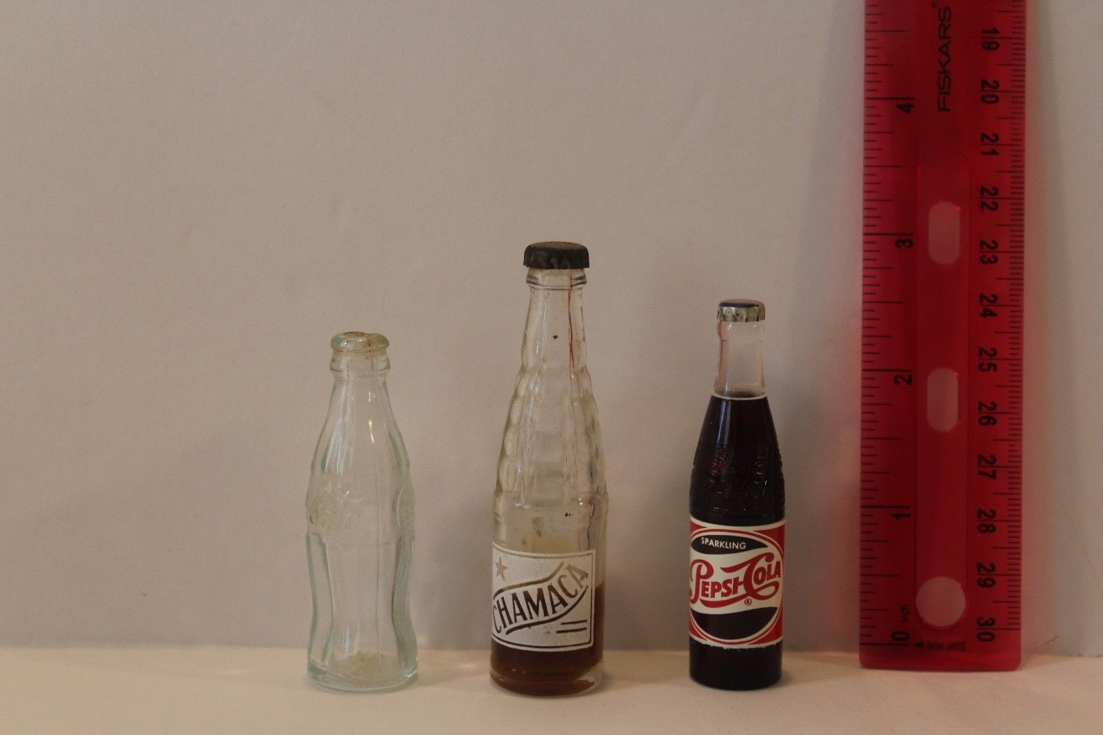 Title (ebay affiliate link): 3 Mini vintage Glass Soda Bottles: Coca Cola, Pepsi,