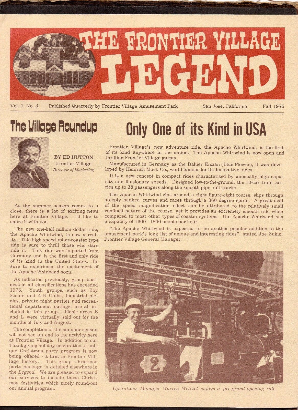 FRONTIER VILLAGE LEGEND Fold Open NEWSPAPER Vol. 1 No. 3 Fall 1976 Coca Cola