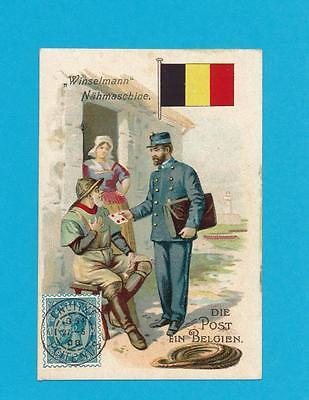 Postman Mailman Mail Carrier Stamp Flag Belgium Great Trade Card 1910
