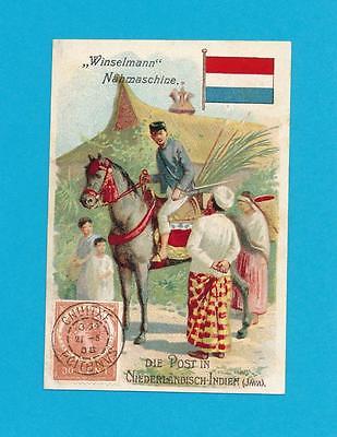Postman Mailman Mail Carrier Stamp Flag Dutch East Indies Great Trade Card 1910