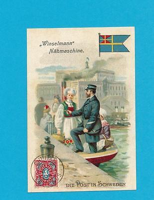 Postman Mailman Mail Carrier Stamp Flag Sweden Great Trade Card 1910