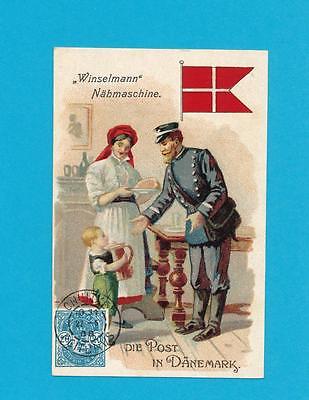 Postman Mailman Mail Carrier Stamp Flag Denmark Great Trade Card 1910