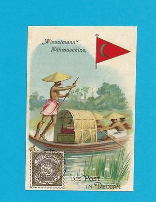 Postman Mailman Mail Carrier Stamp Flag Deccan Great Trade Card 1910