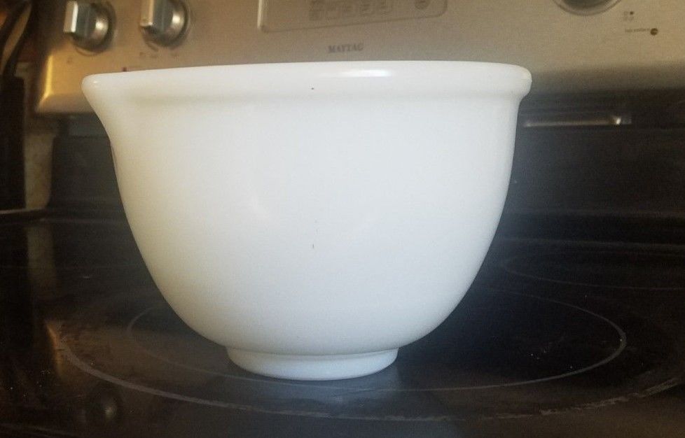 Title (ebay affiliate link): Vintage Sunbeam Mixmaster Small Milk Glass Bowl w/ Pour Spout 6.5" X 4.5"