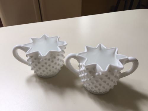 Fenton Milk Glass Hobnail Star Sugar And Creamer