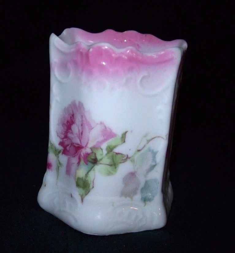 Lovely Milk Glass Decorated with Roses Toothpick Holder