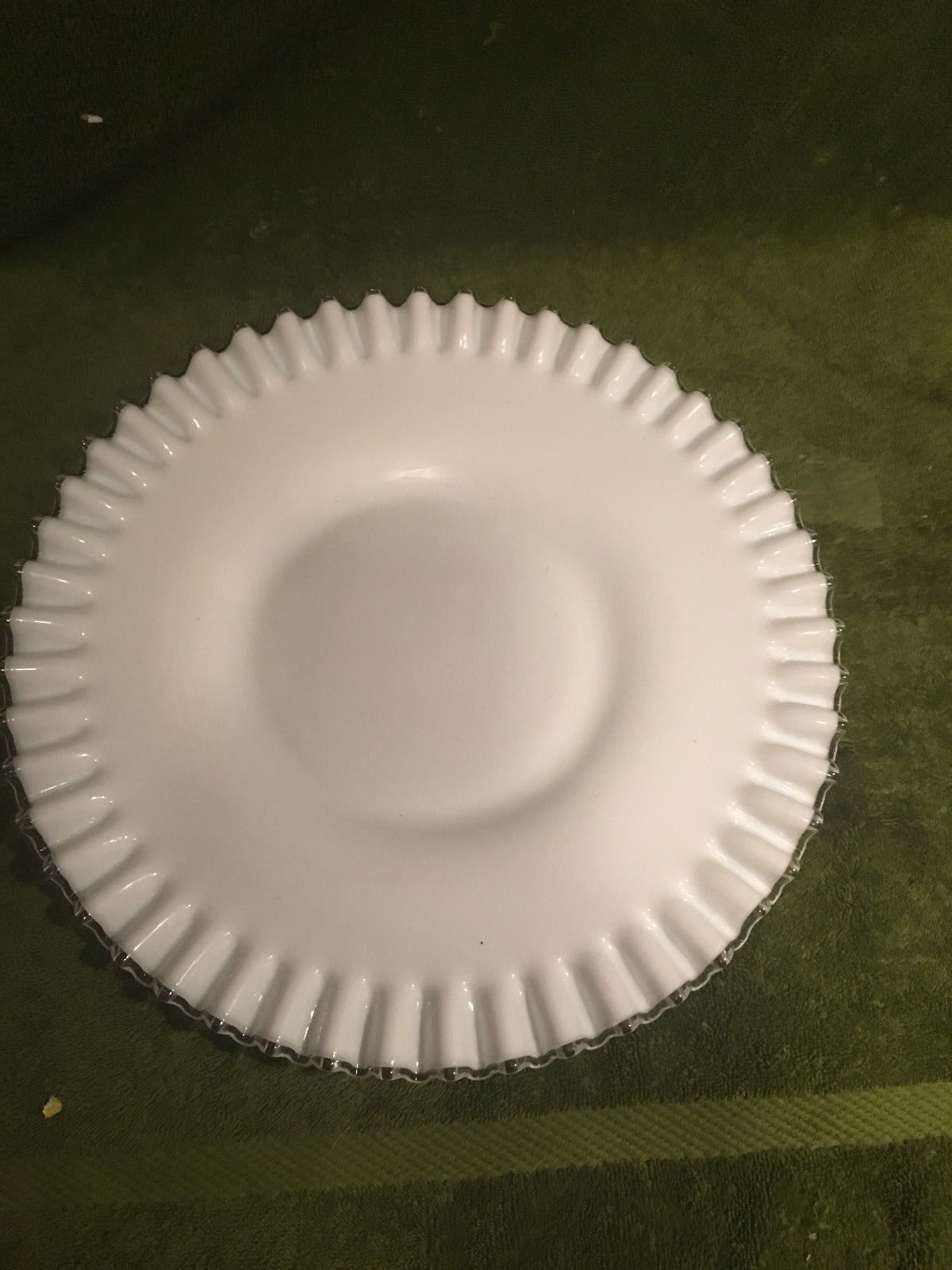Title (ebay affiliate link): 12" Fenton Silver Crest White Milk Glass Footed Cake Plate Crimped Retired