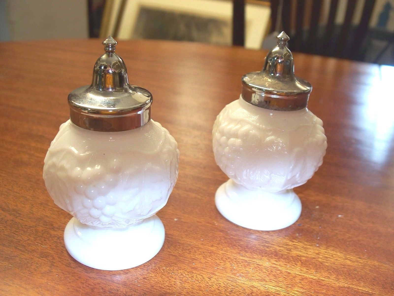 GRAPE PATTERN MILK GLASS SALT AND PEPPER''