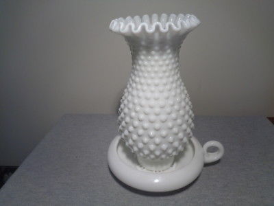 Title (ebay affiliate link): Vintage Fenton "Hobnail" White Milk Glass Hurricane Lamp & Base