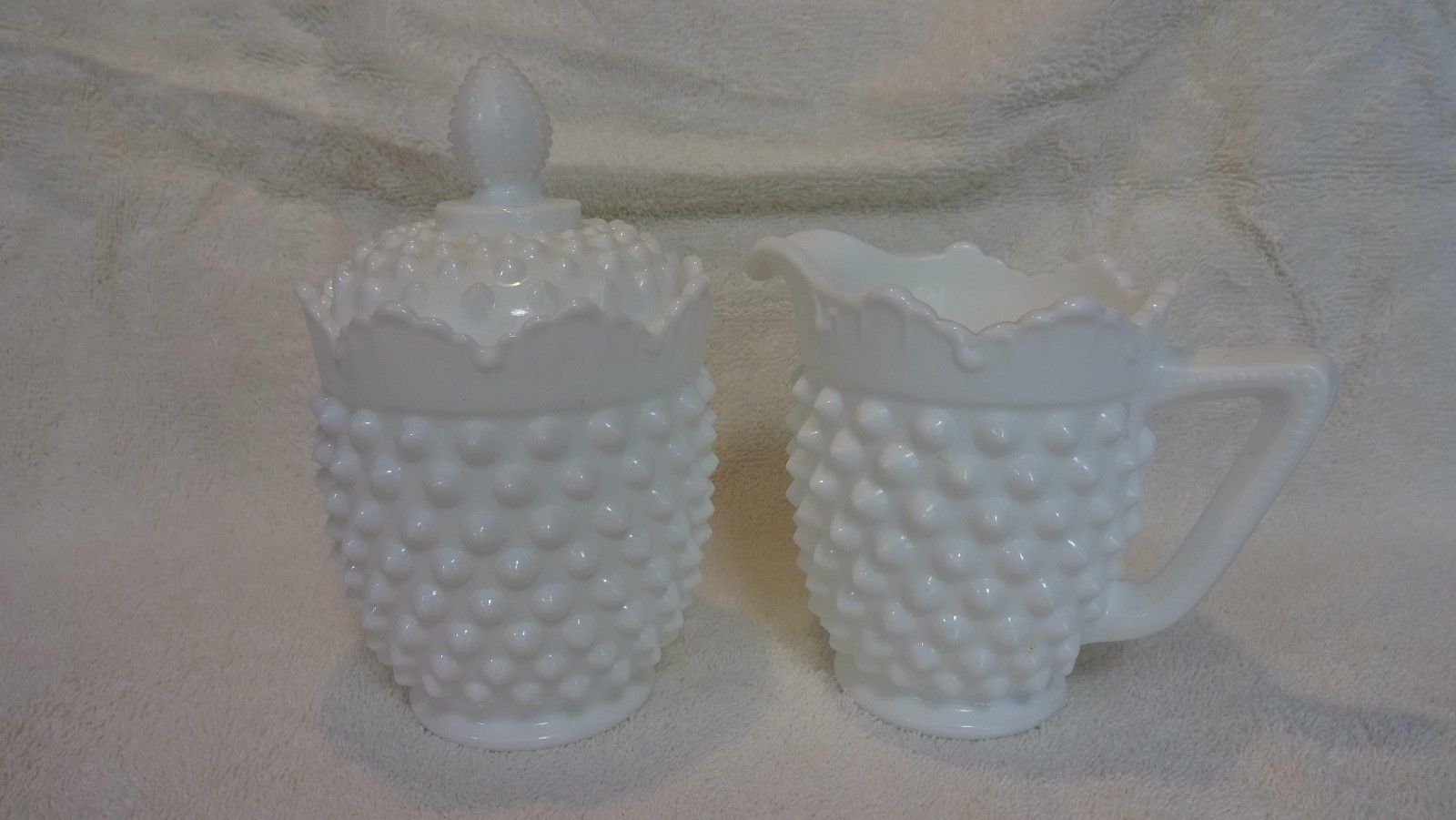Fenton Hobnail Milk Glass Sugar & Creamer