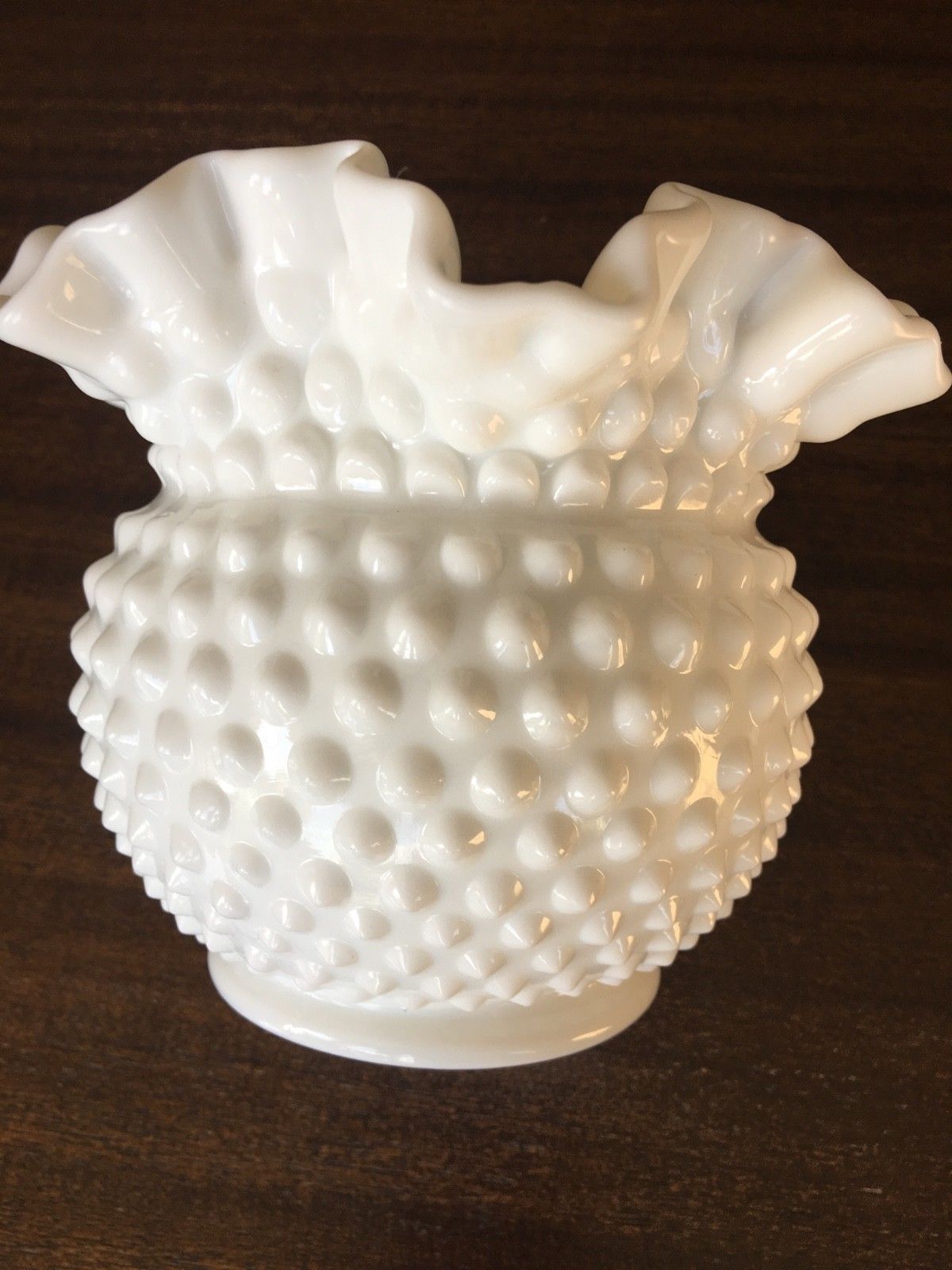 Title (ebay affiliate link): Vintage Fenton Hobnail White Milk Glass Rose Bowl Vase Double Crimped Ruffle