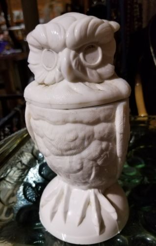 Vintage 1880''s Atterbury Milk Glass Owl Jar Covered Dish