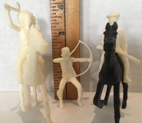 Title (ebay affiliate link): VTG Plastic Toy Lot 2 Horses / 2 Indians & 1 Cowboy Riders; Black & White