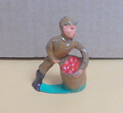 Antique Manoil Lead Toy Figure Man Moving An Apple Barrel 41/36 Made USA