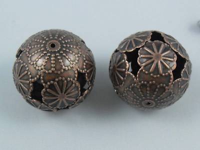 50Pcs Antiques Copper Floral Jewelry Beads 16mm