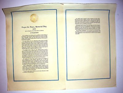 Title (ebay affiliate link): F) NIXON 1971 MEMORIAL DAY PRAYER FOR PEACE