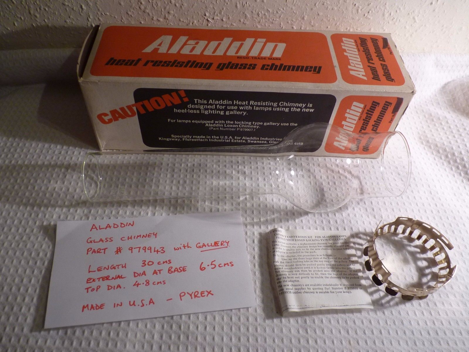 Title (ebay affiliate link): Aladdin Paraffin Lamp Glass Chimney Unused Old Stock P979943 - with Gallery