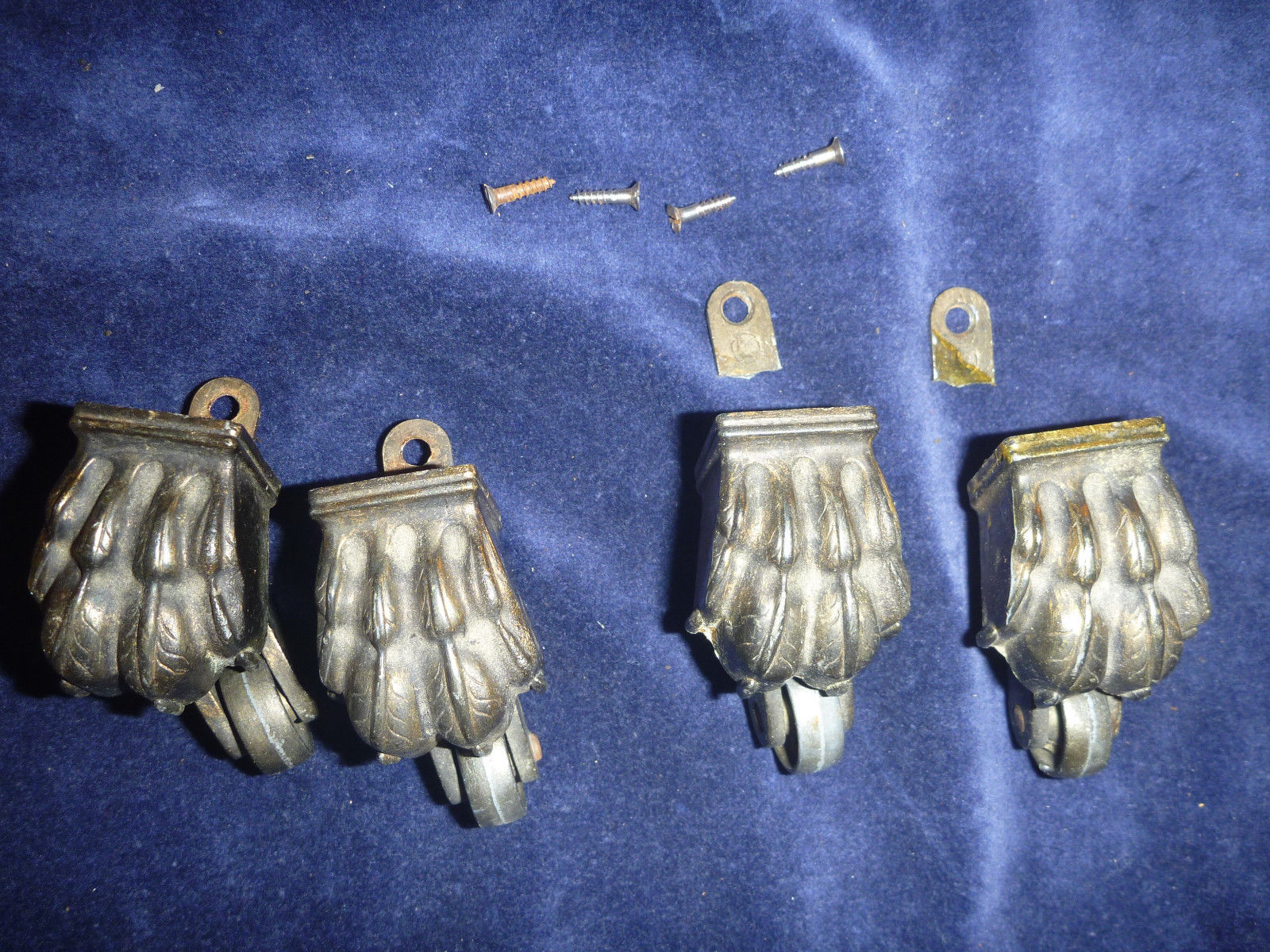 Title (ebay affiliate link): Set of 4 Antique Lions Paw Brass Casters, 2 very good, 2 need repair