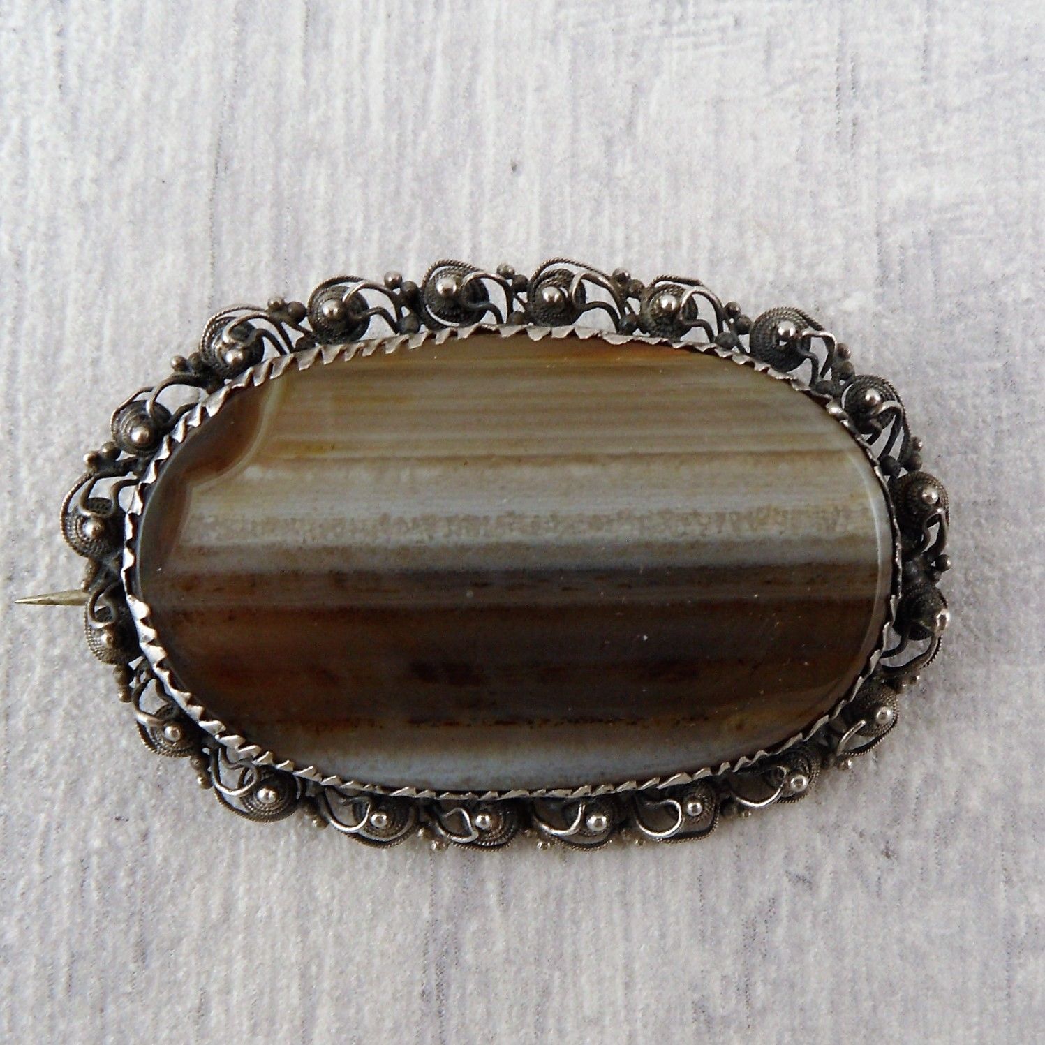 Title (ebay affiliate link): Stunning Antique Georgian Silver Filigree Agate Oval Brooch, circa 1820