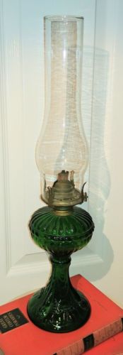 Title (ebay affiliate link): VINTAGE VICTORIAN HURRICANE LAMP, OIL LAMP, DARK GREEN PRESSED GLASS COMPLETE !