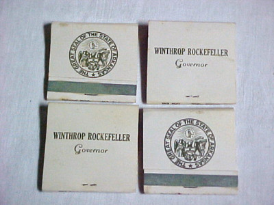 Title (ebay affiliate link): WINTRHOP ROCKEFELLER ARKANSAS GOVERNOR 4 MATCHBOOKS~EX!