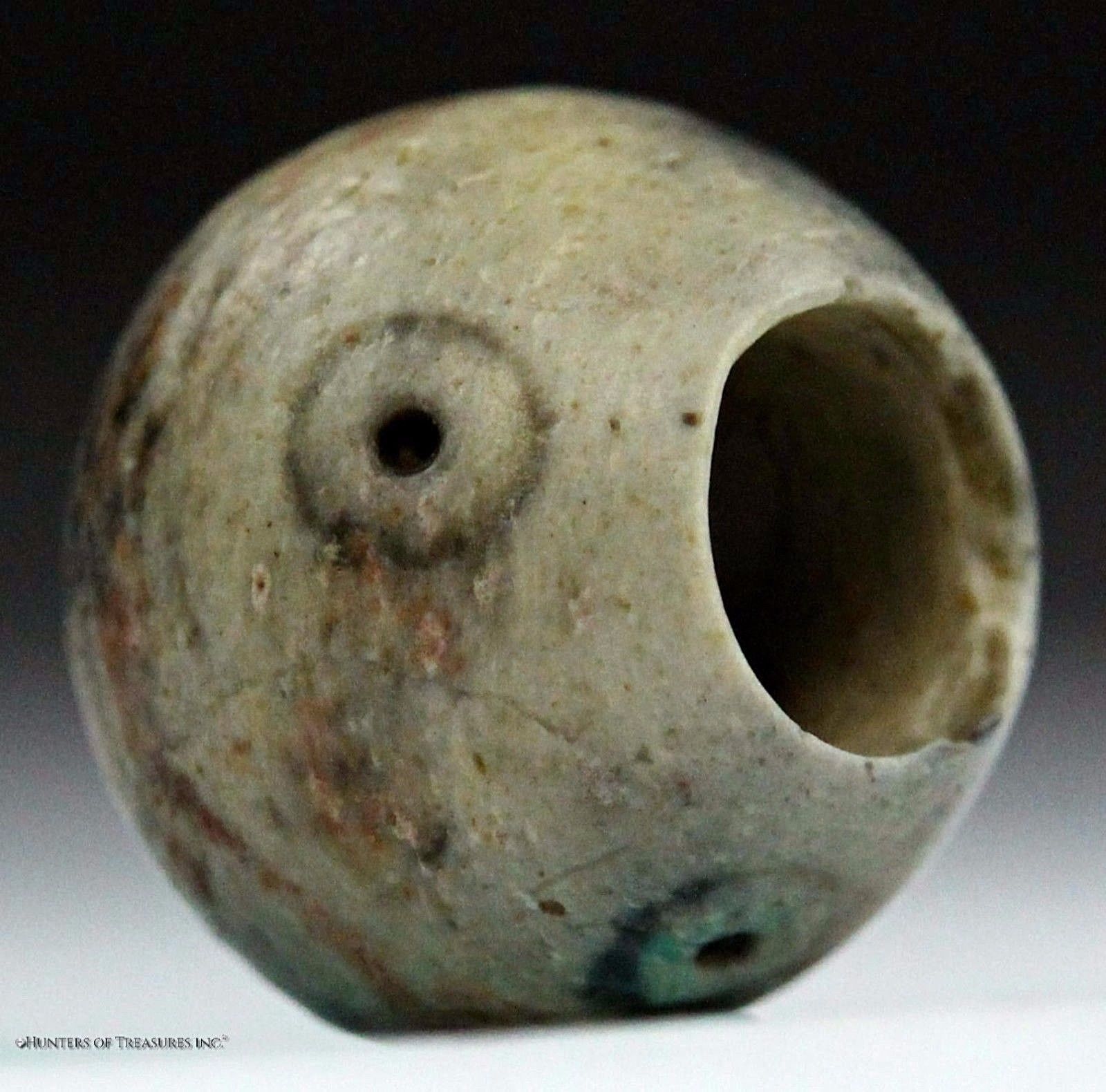 90) Pre Columbian Moche Chimu Indian Stone Spindle Whorl "Eyes" Bead Artifact
