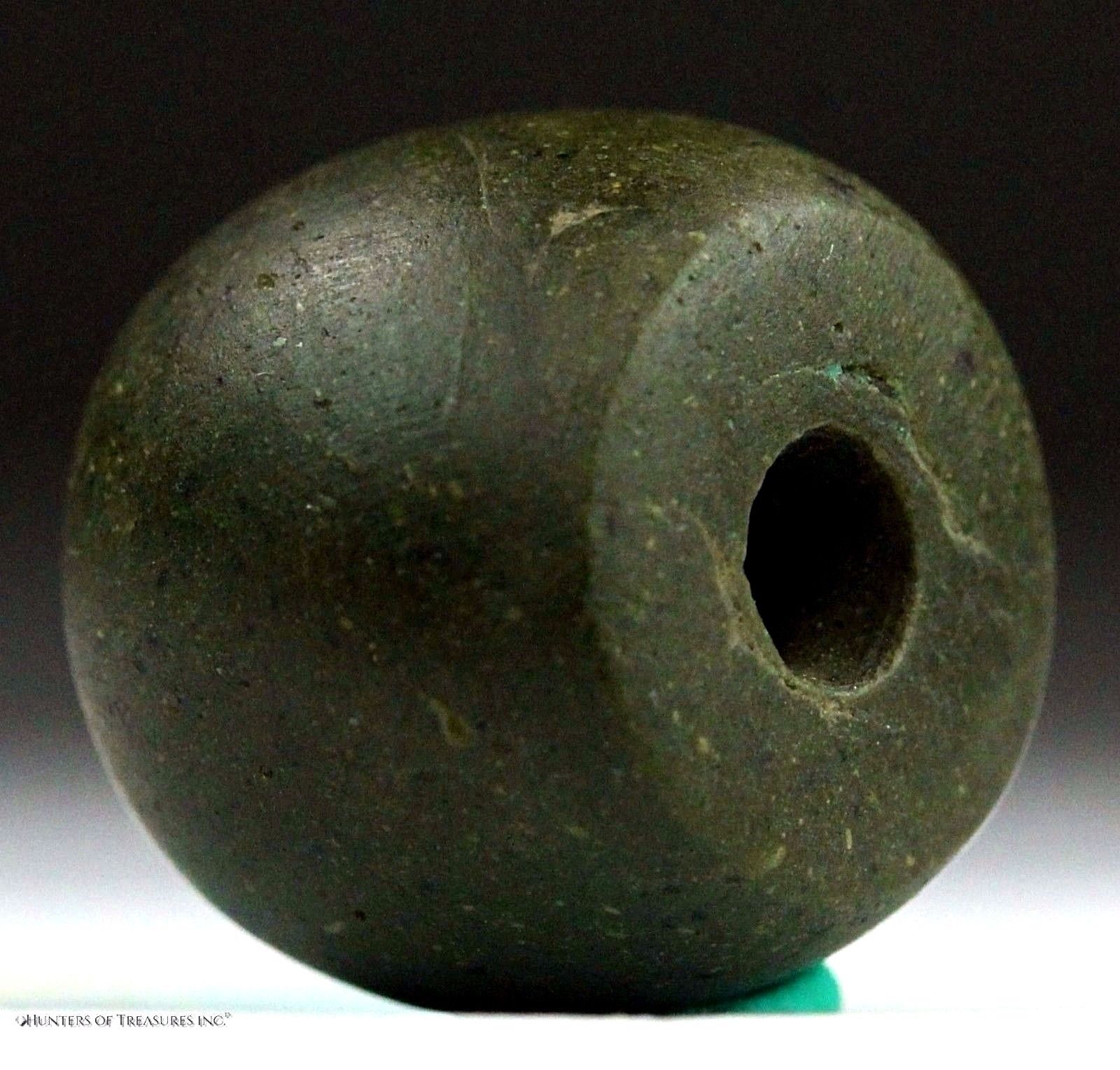 Title (ebay affiliate link): 100) Pre Columbian Moche Indian Steatite Greenstone Spindle Whorl Bead Artifact