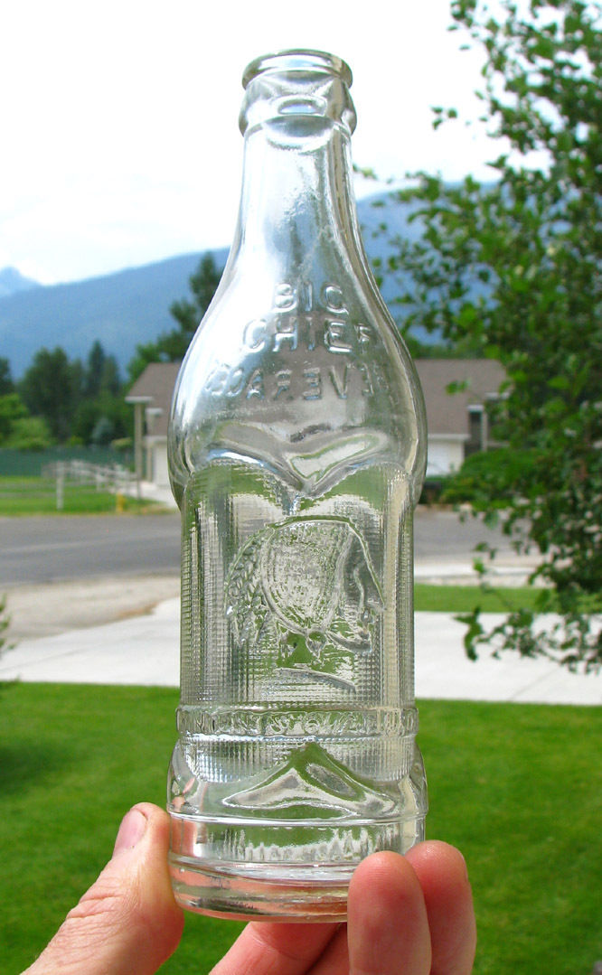 Deco style BIG CHIEF INDIAN HEAD BEVERAGES soda bottle IDAHO FALLS ID Coca Cola