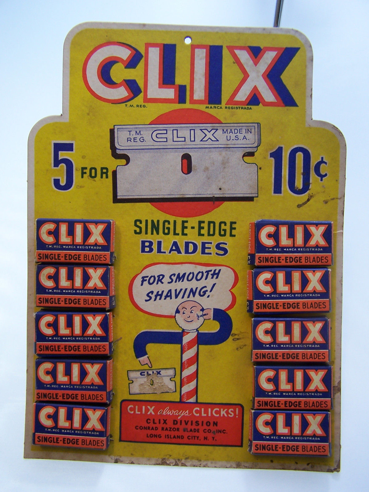 Title (ebay affiliate link): Vintage Clix Single Edge Blade Shaving Store Display Card