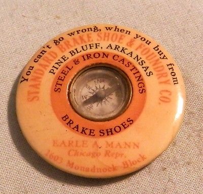 Title (ebay affiliate link): Vintage Standard Brake Shoe Pine Bluff Arkansas local advertising pocket compass