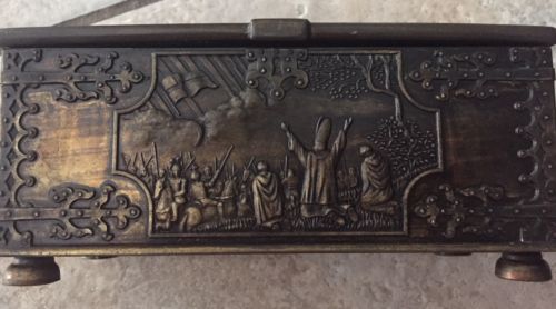 Antique Iron Art Bronzed Casket Box Battle Of The Lyndanisse Copenhagen Denmark