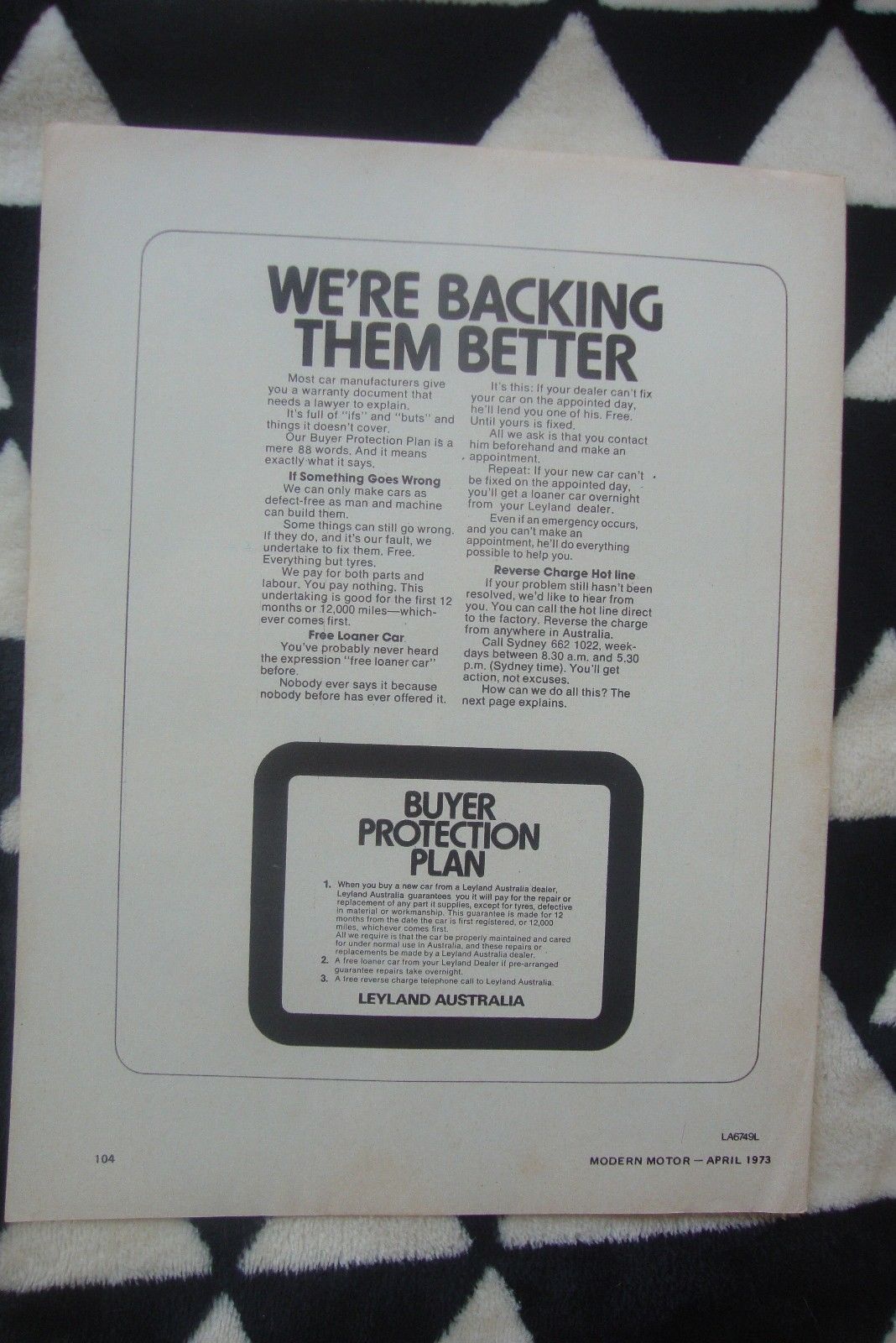 1973 Leyland Australia Buyers Protection Plan Aussie Original Magazine Advert