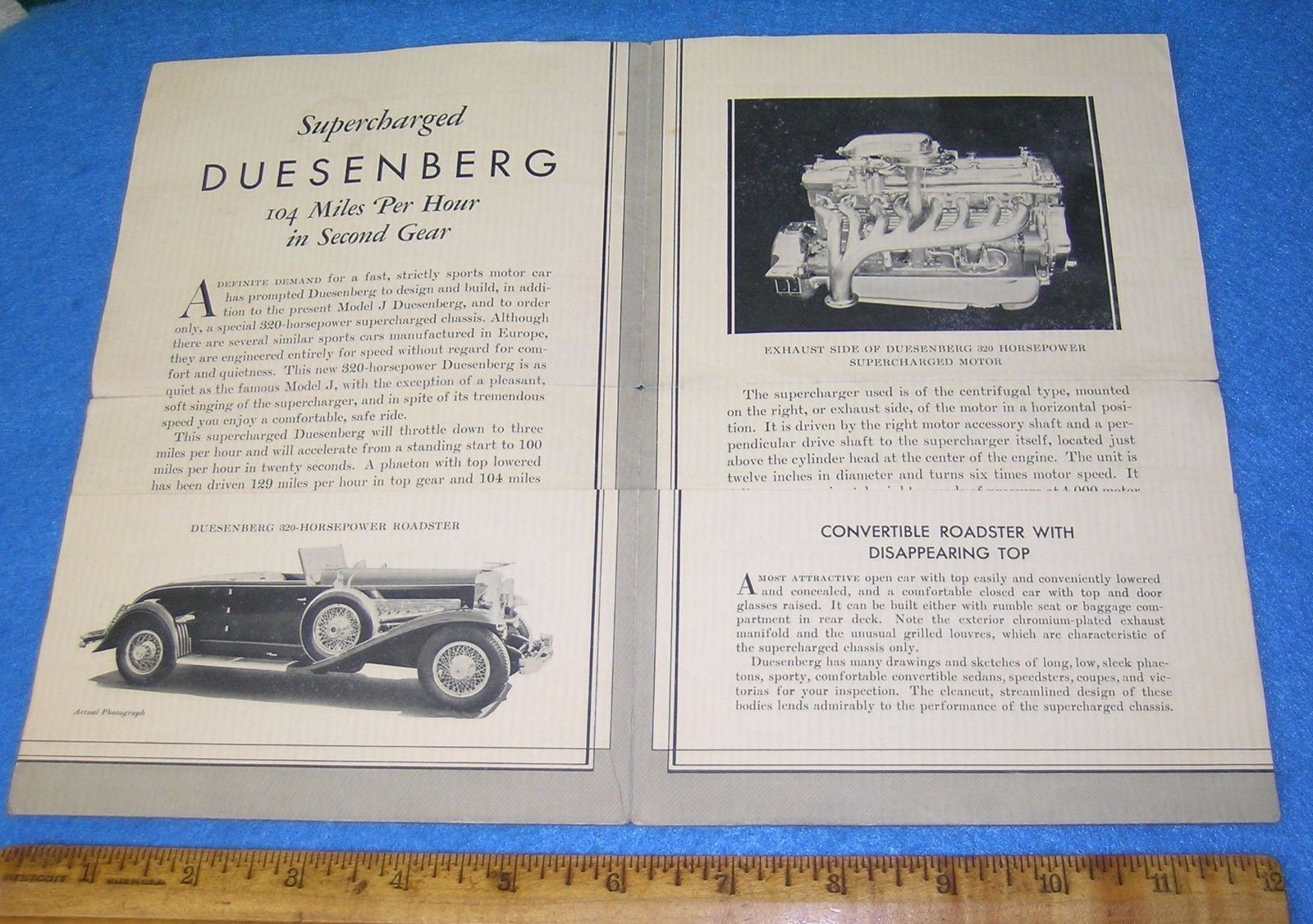 Title (ebay affiliate link): Orig 1928 DUESENBERG Model J Supercharged 320 Horsepower Fold-out Flyer