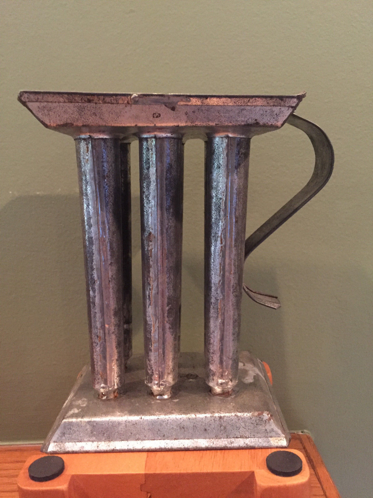 Vintage 6 Tube Tin Candle Mold 6" w/ Handle