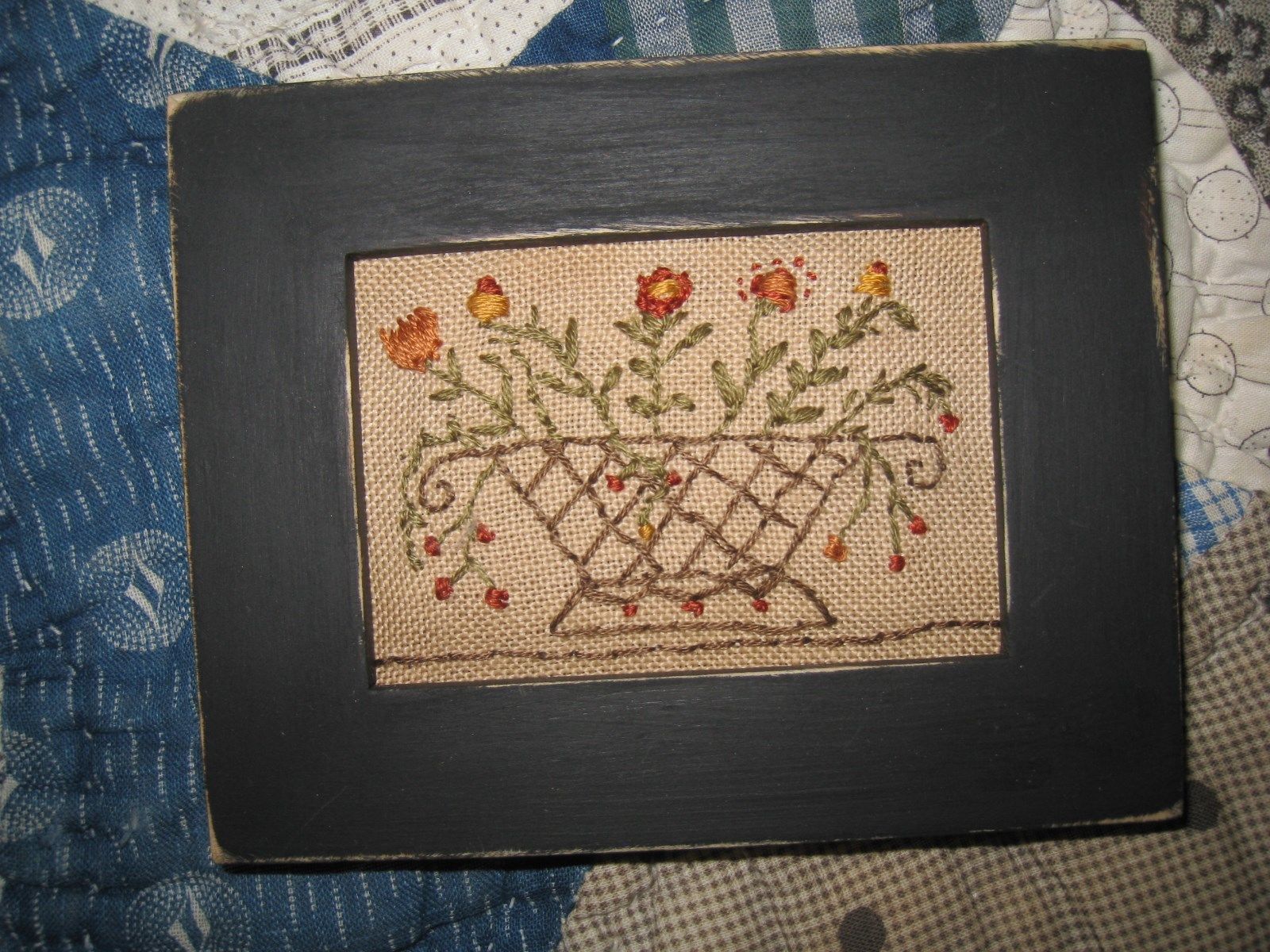 Title (ebay affiliate link): Primitive tiny Sampler *Autumn Folk Art Flowers in Basket* hand done needlework