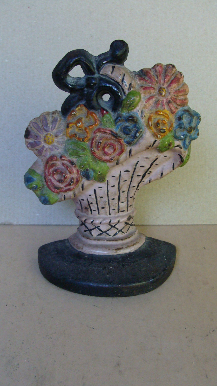 Title (ebay affiliate link): ca 1900 diminutive cast iron flower basket doorstop, orig. paint, no reserve *