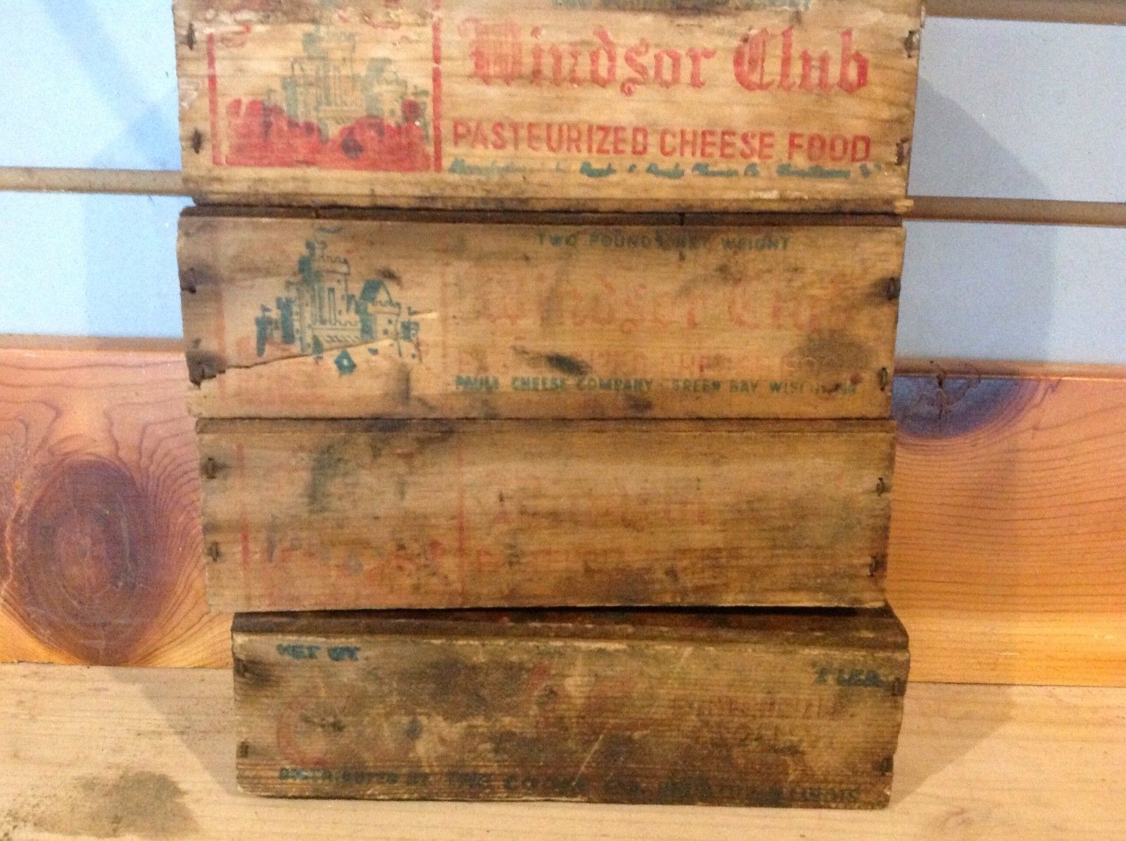 Title (ebay affiliate link): 4 Old Vintage Windsor Club DairyAdvertising Cheese Wood Boxes Lot 2lb boxes