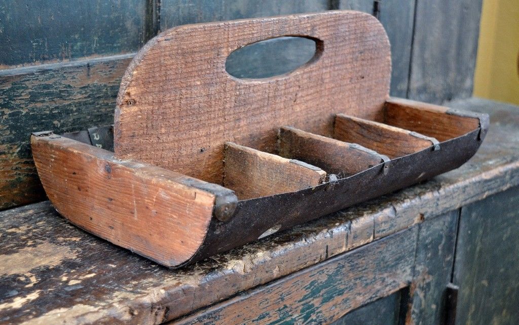 Antique Primitive Wood and Metal Carrier **