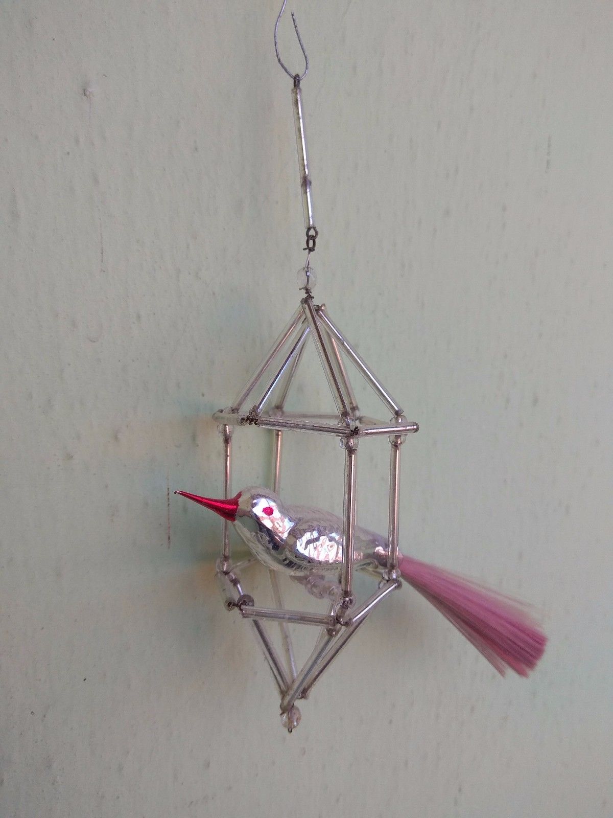 Title (ebay affiliate link): VINTAGE BEADED GLASS BIRD IN BIRDCAGE CHRISTMAS ORNAMENT