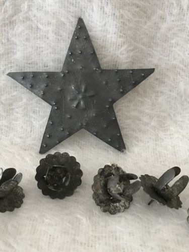 Antique Christmas Tree Tin Candle Holders 6 Tack Type & Punched Tin Star