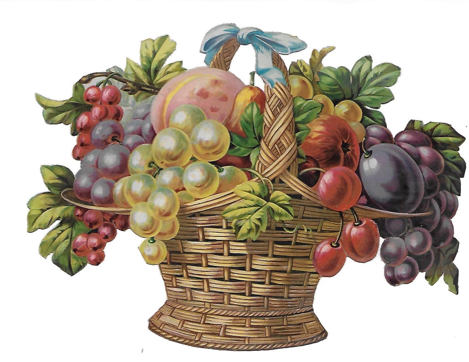 Title (ebay affiliate link): Antique Victorian Die Cut Scrap Large Basket of Autumn Fruit ca. 1880s