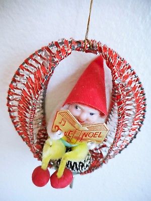 Title (ebay affiliate link): Antique Vintage Elf Pine Cone Red Wreath Spun Cotton Chenille Pipe Cleaner