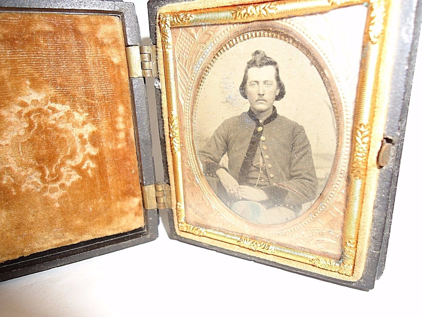 Title (ebay affiliate link): 9th.P Tintype Civil War Union Soldier in Patriotic Constitution Case w/Tax Stamp