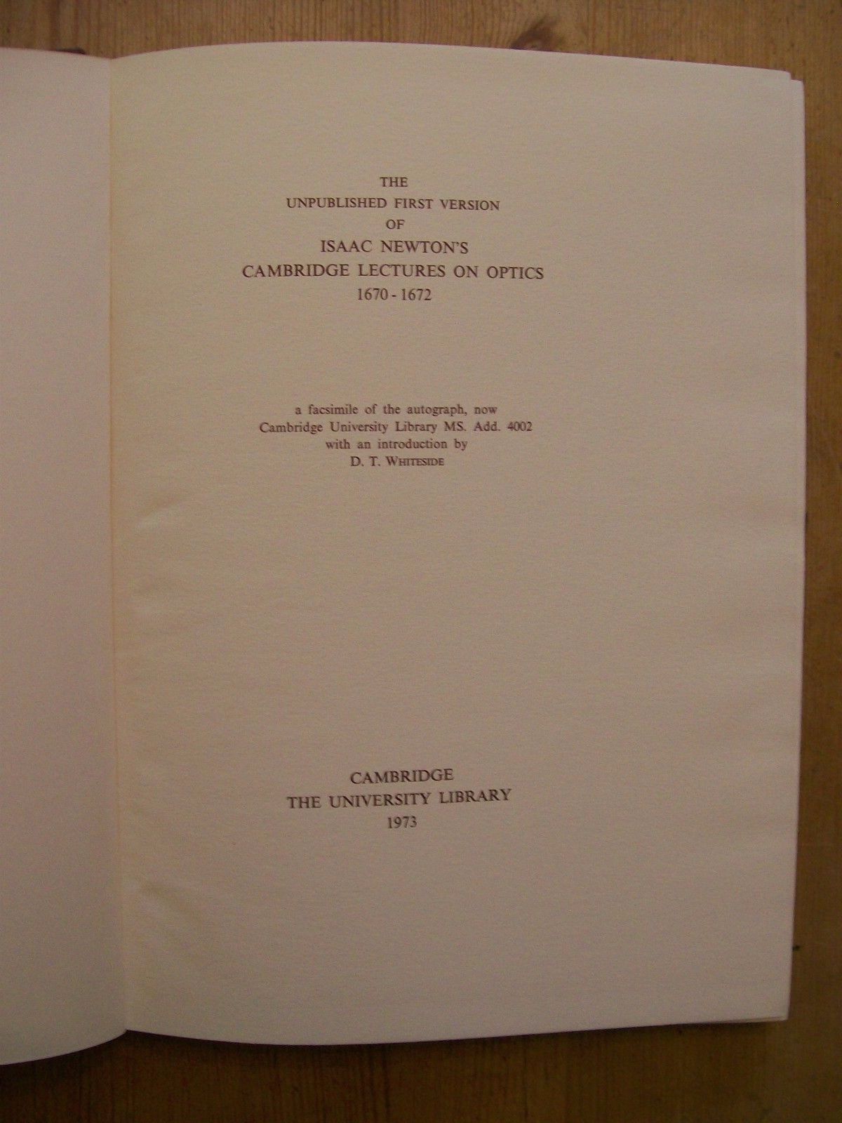 Title (ebay affiliate link): ISAAC NEWTON''S CAMBRIDGE LECTURES ON OPTICS 1670-1672 ULTRA RARE 1973 IN LATIN